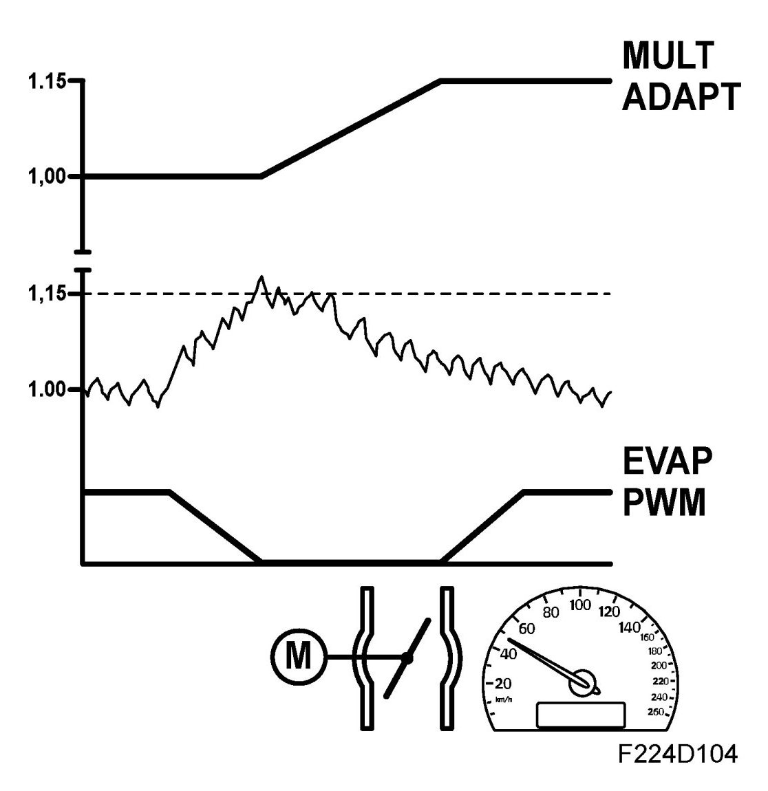 The fuel quantity is added or subtracted until closed loop fluctuates around 1.00 (0%). Additive adaptation is required because air leaks at idling speed will lead to a greater fault that must not be adapted multiplicatively as the fuel quantity would then be far too great when the load was increased.