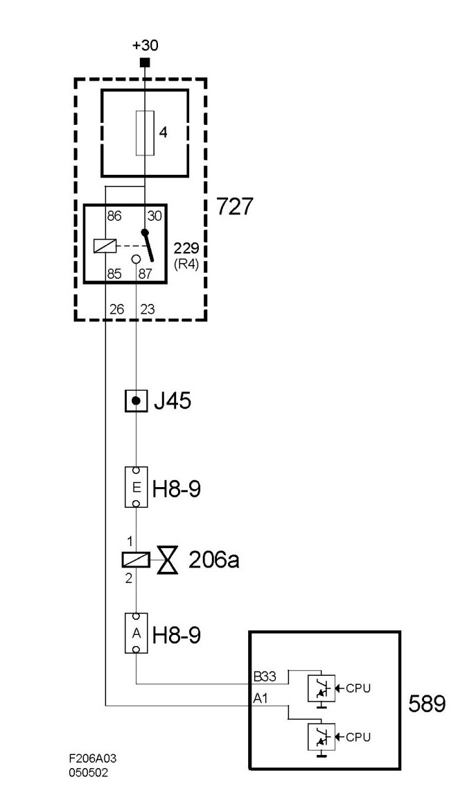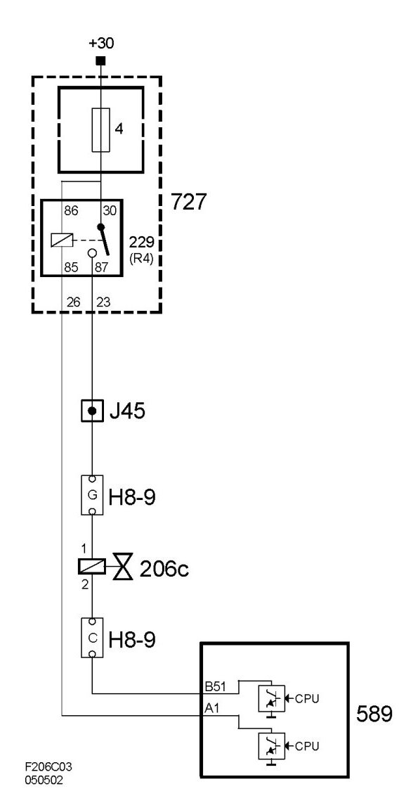 The injectors are supplied with current from the main relay and are grounded by the control module as follows: