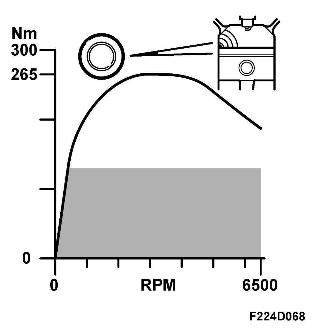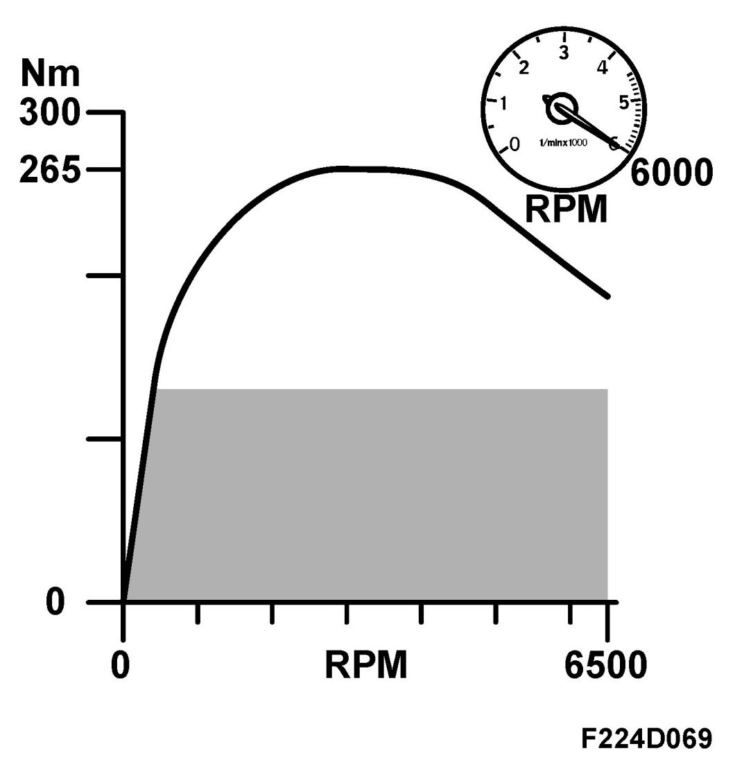 When the engine speed exceeds 5900 rpm, engine torque will be limited. If the engine speed should increase above 6200 rpm then the fuel supply will be cut.