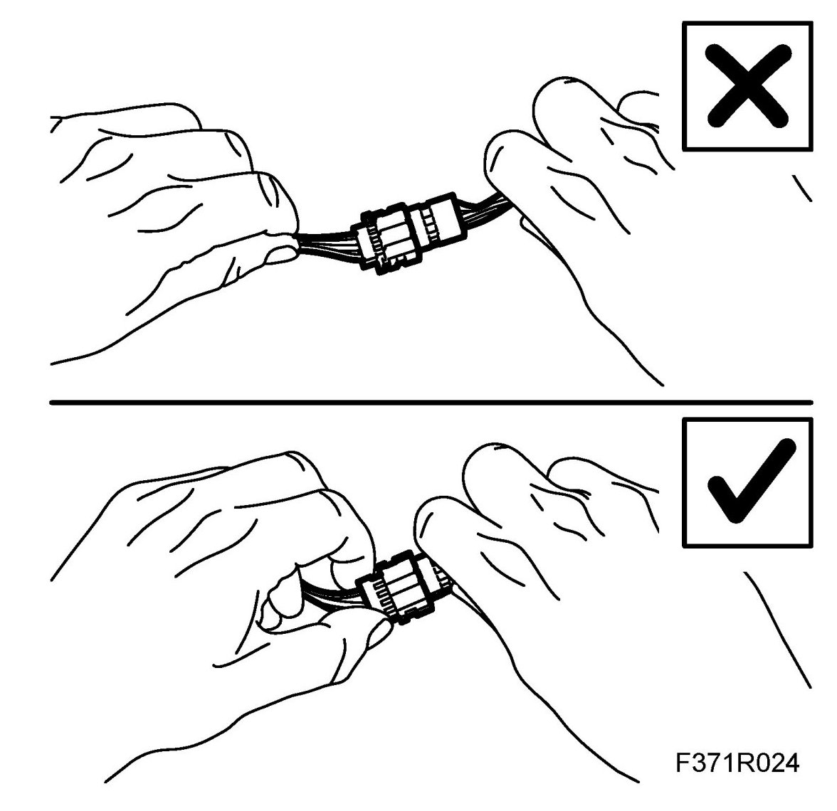 3. Never pull the wiring harness when removing the connector.