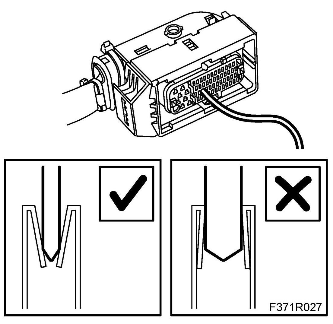 - Use a test cable (part no. 86 12 731) of the correct size to avoid damaging the sleeves in the connector.
