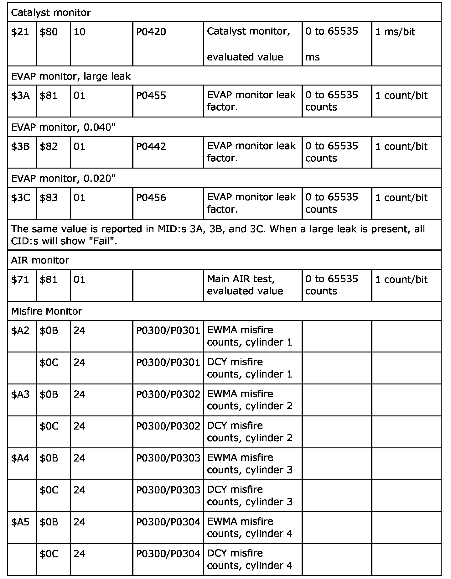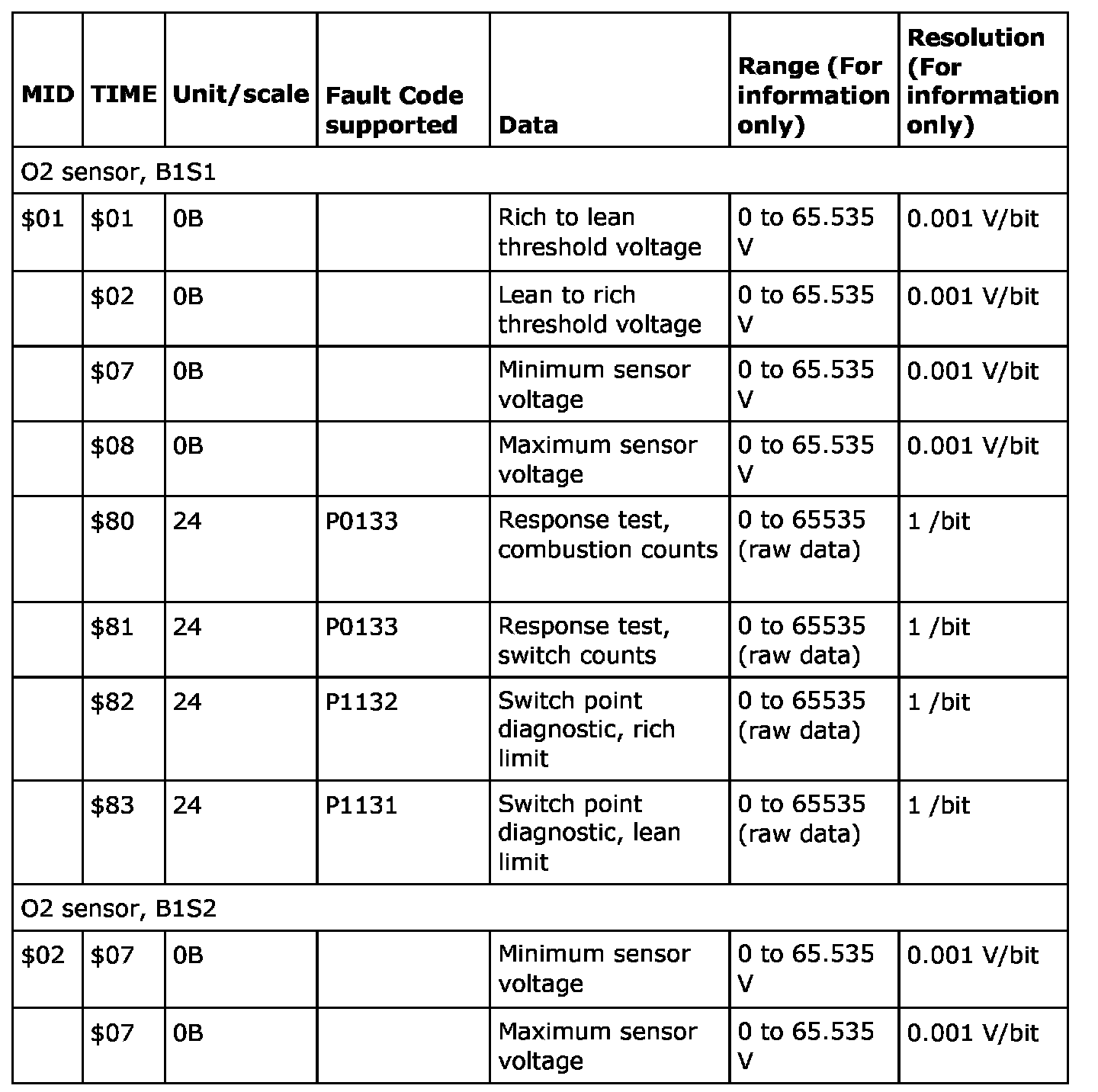 - MID01, TID07 & 08: The test and limit values are fixed and do not reset at code clear, nor do they ever change values.