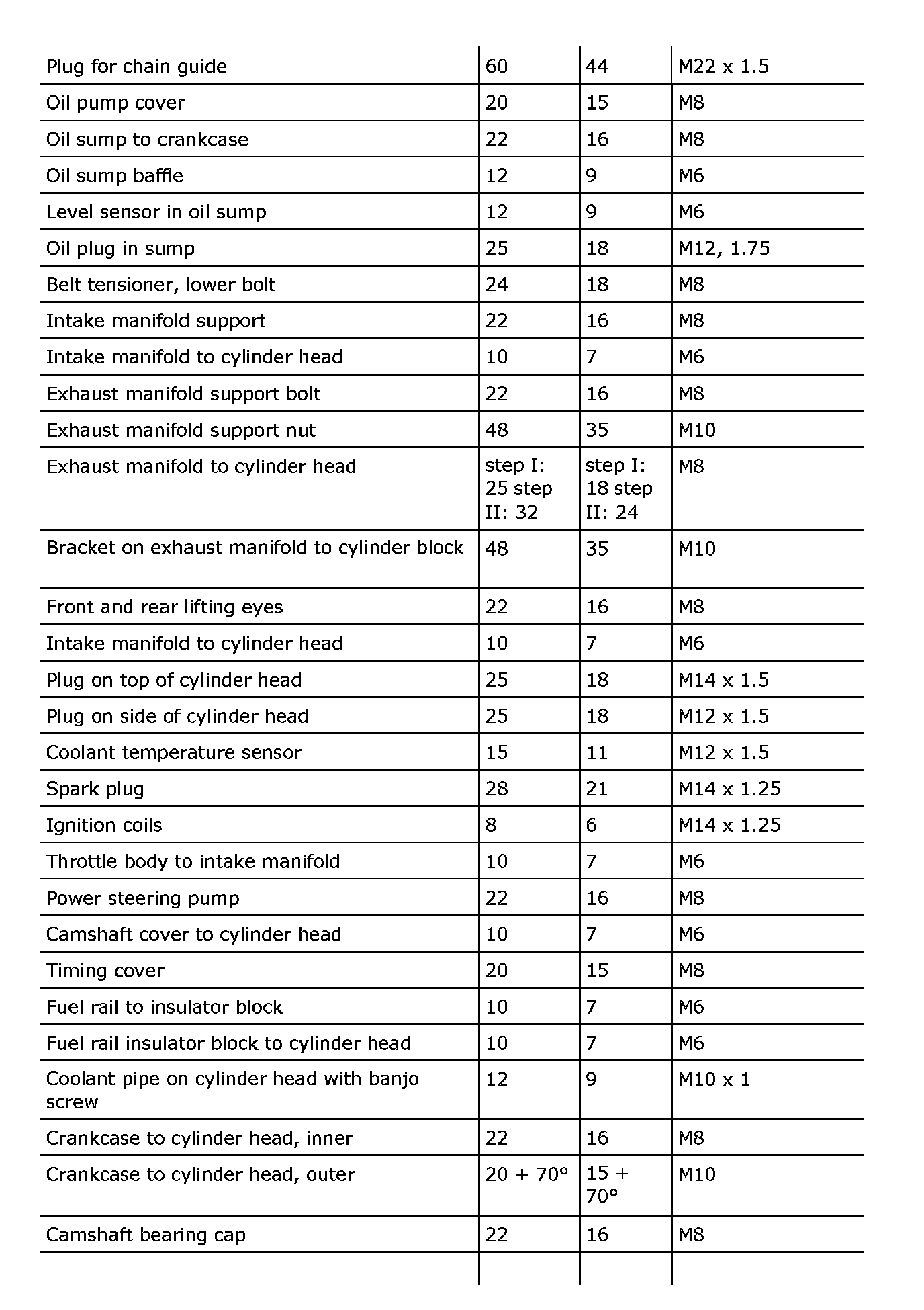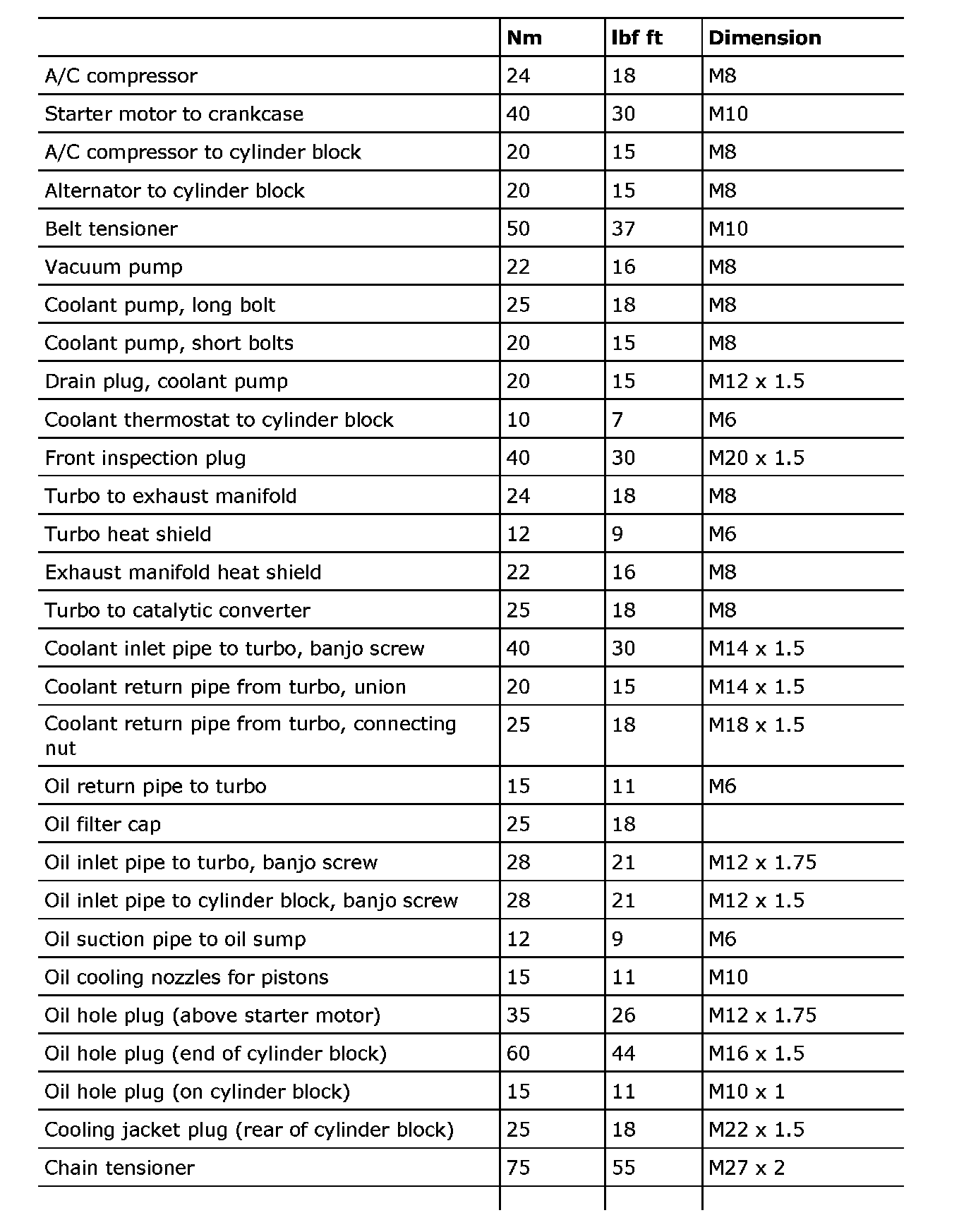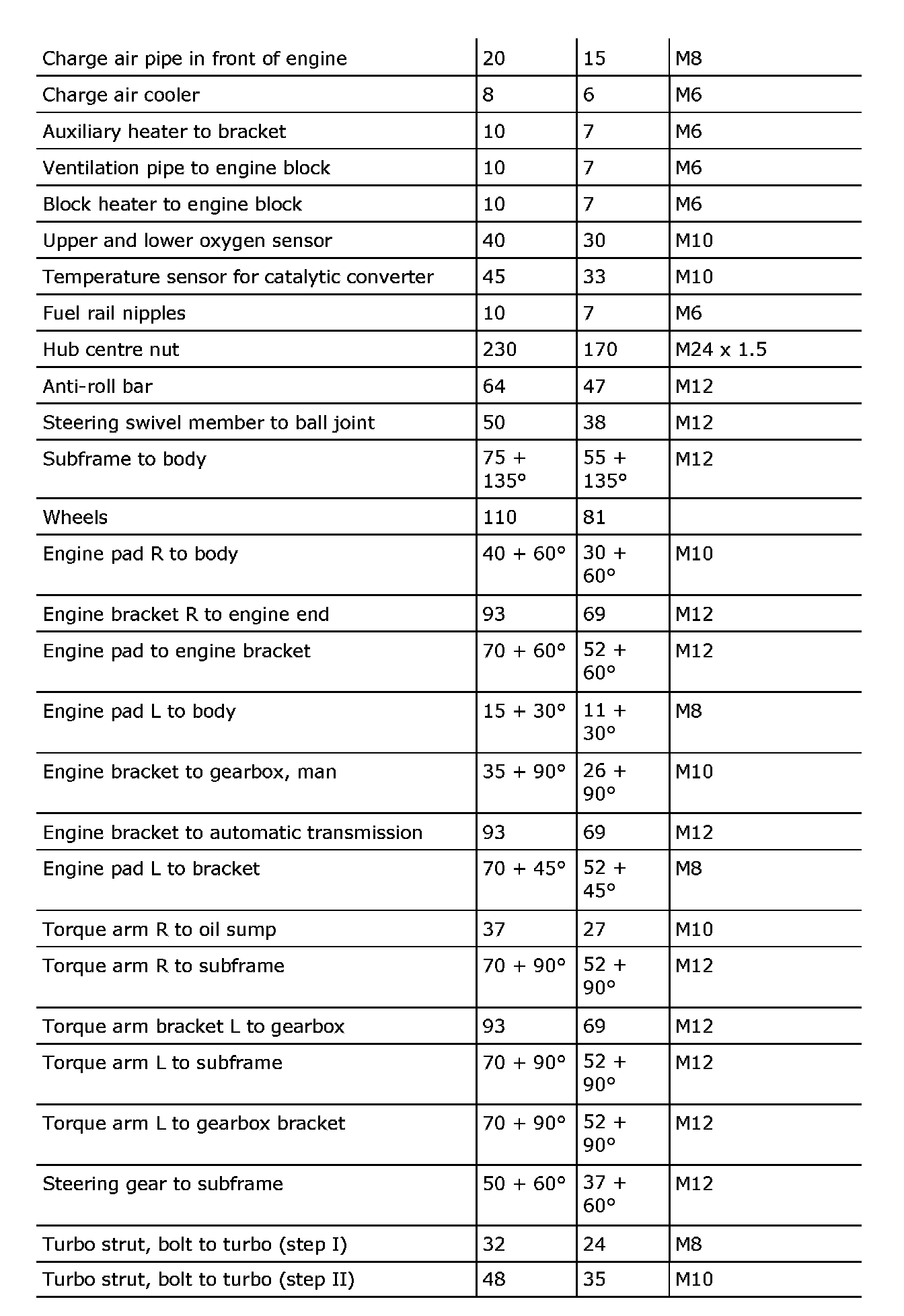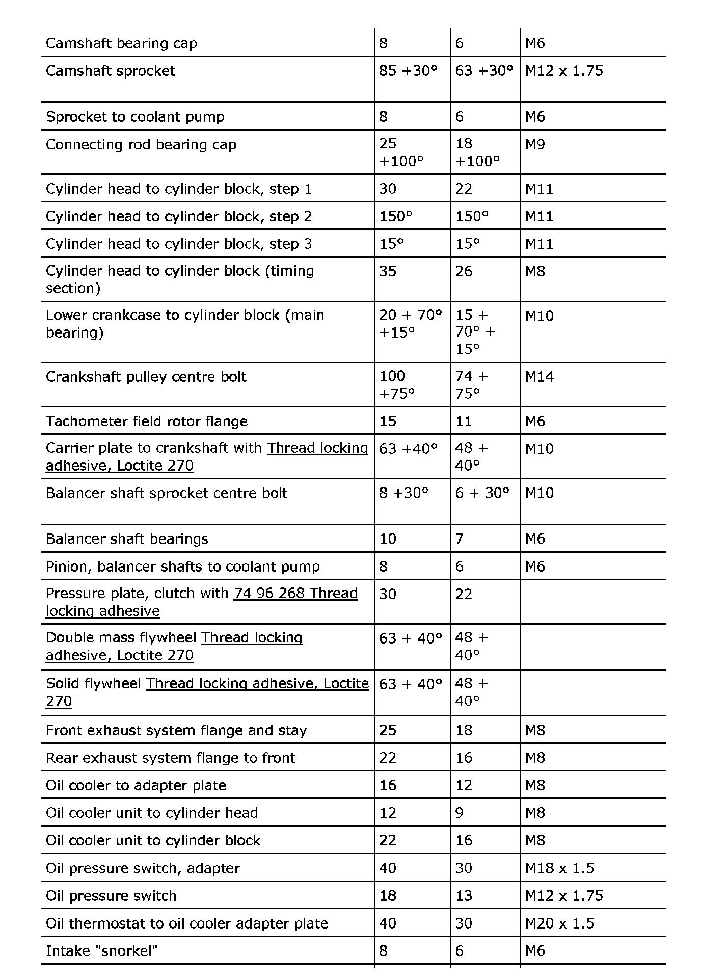 Tightening torque, B207