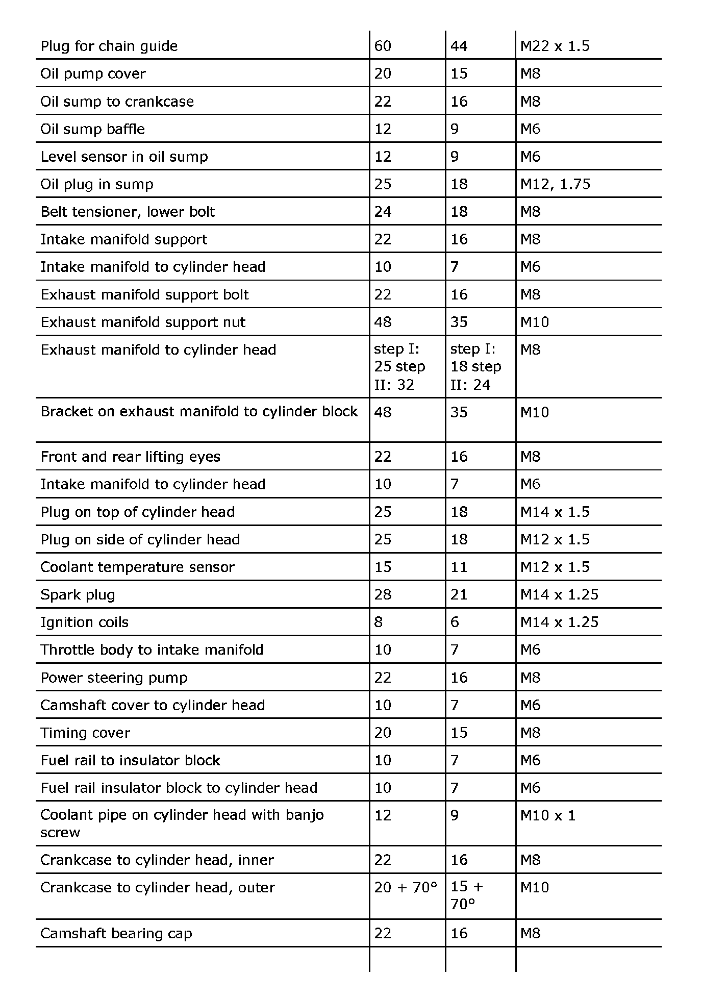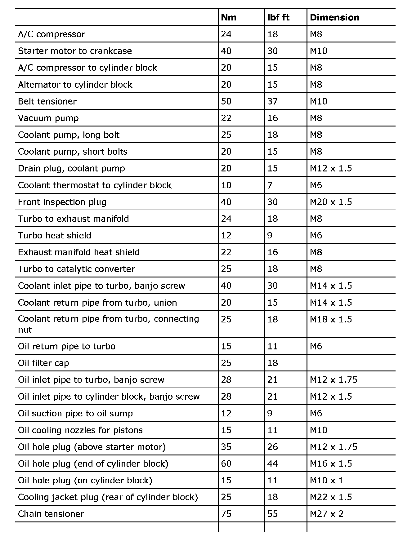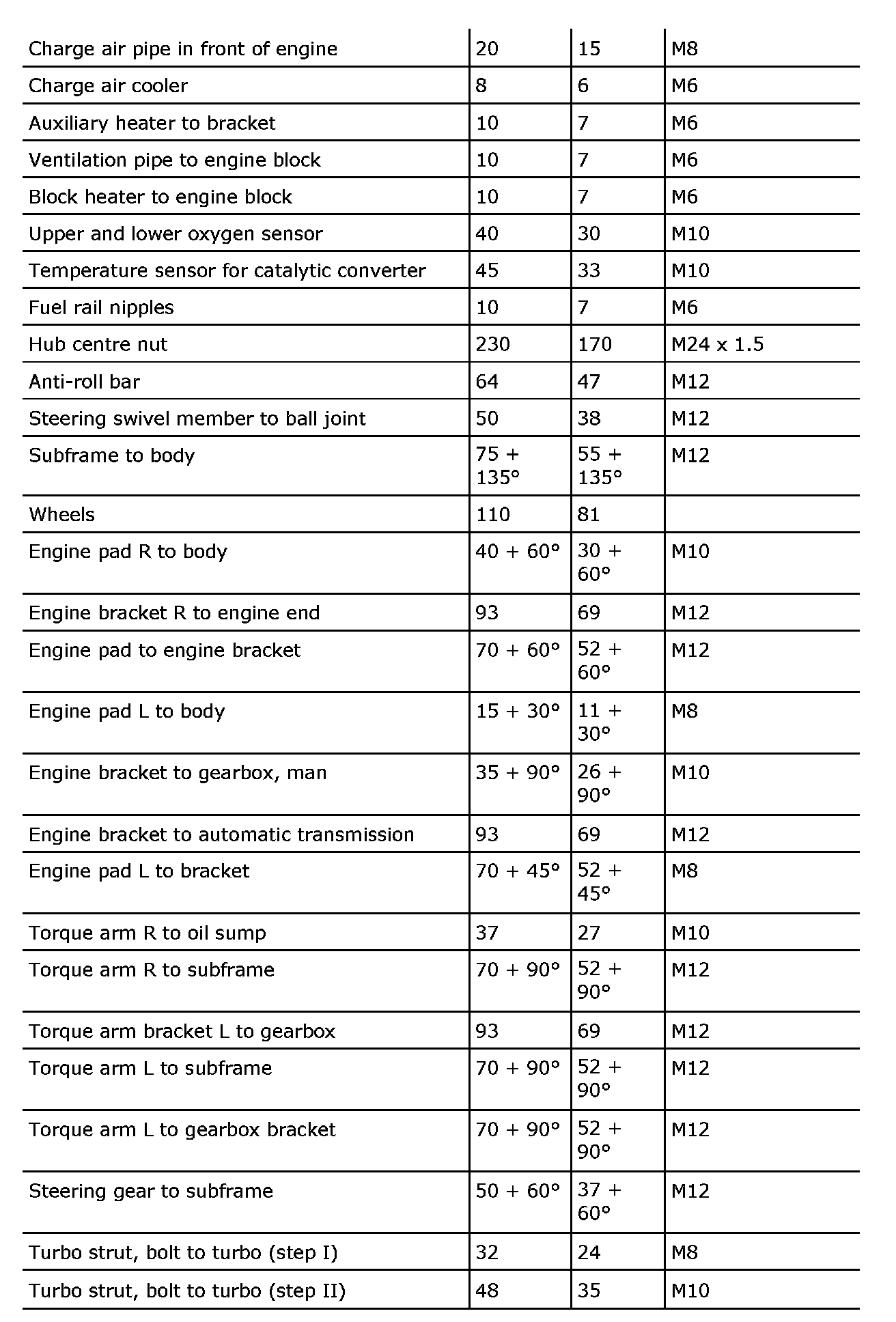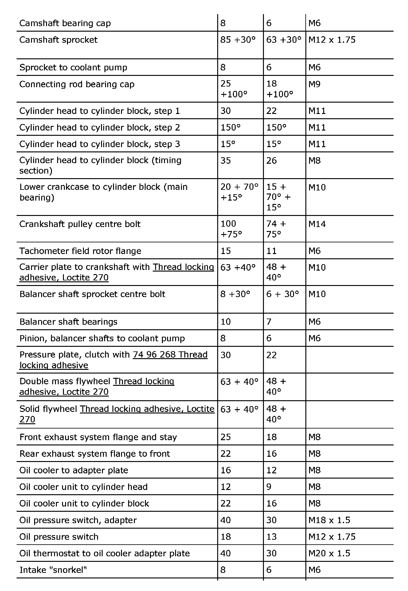 Tightening torque, B207