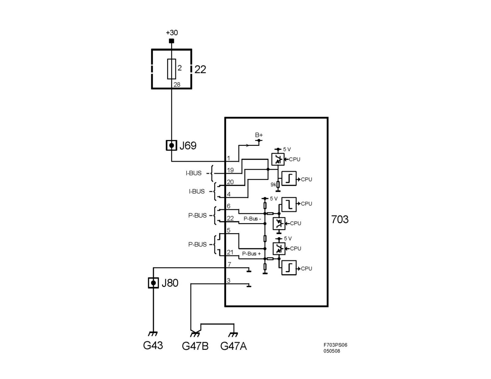 - Connecting the P-bus and the I-bus to the data link connector.