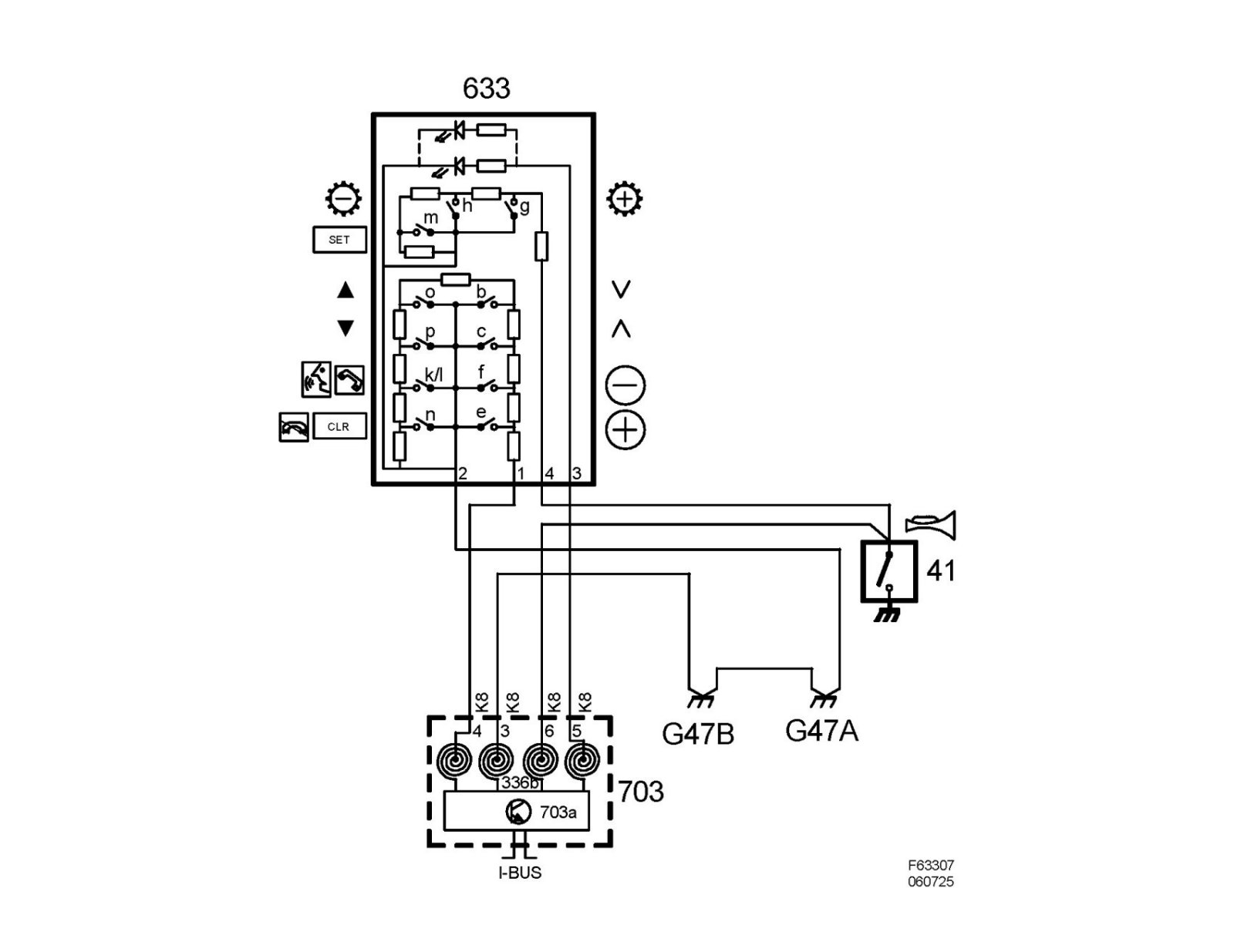 The stalks are replaceable and when the cruise control is fitted, the existing stalk is replaced by one with a cruise control button. CIM has a microprocessor with clock and memory. An internal bus connects the processor and memory with the I/O unit. The I/O unit is responsible for reading the values from the A/D converter for analogue inputs, digital inputs and bus, and for activating the transistors in the final stage.
