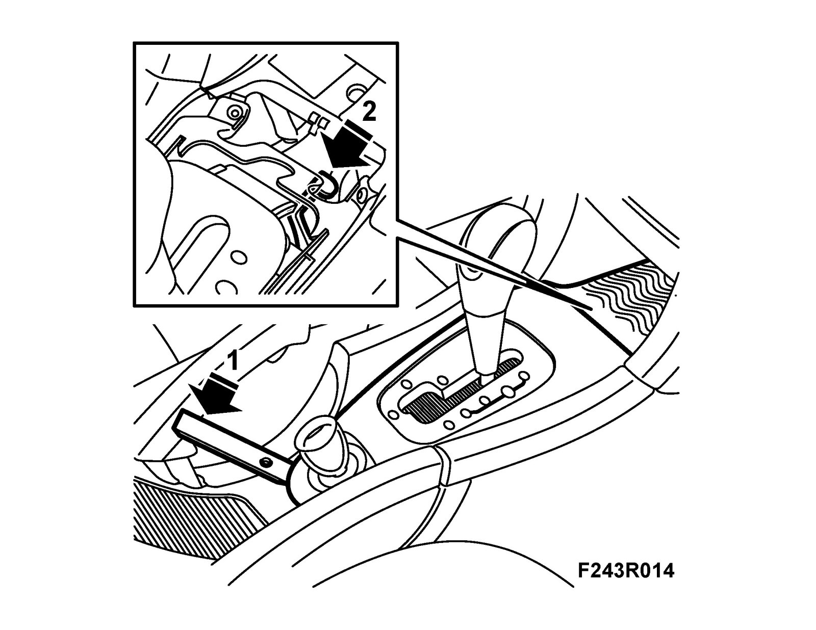 Manual release of solenoid, selector lever, SHIFT LOCKIf there is no power, it will not be possible to move the selector lever because it is locked by the shift-lock solenoid. Proceed as follows to release it manually: