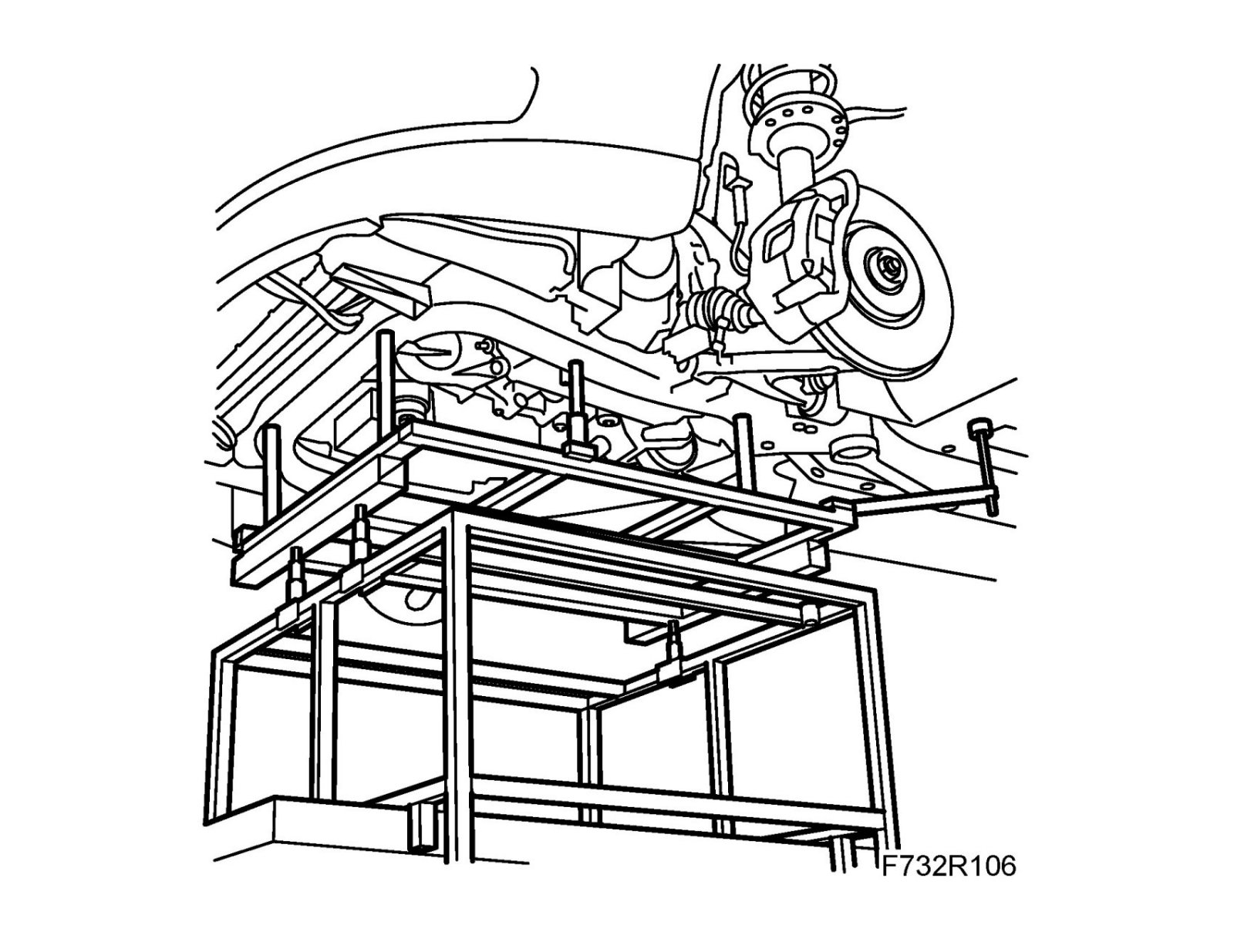 1. Place the frame on the 83 95 311 Trolley lift with 83 94 801 Parent fixture and 83 96 137 Centering tool, subframe - body.