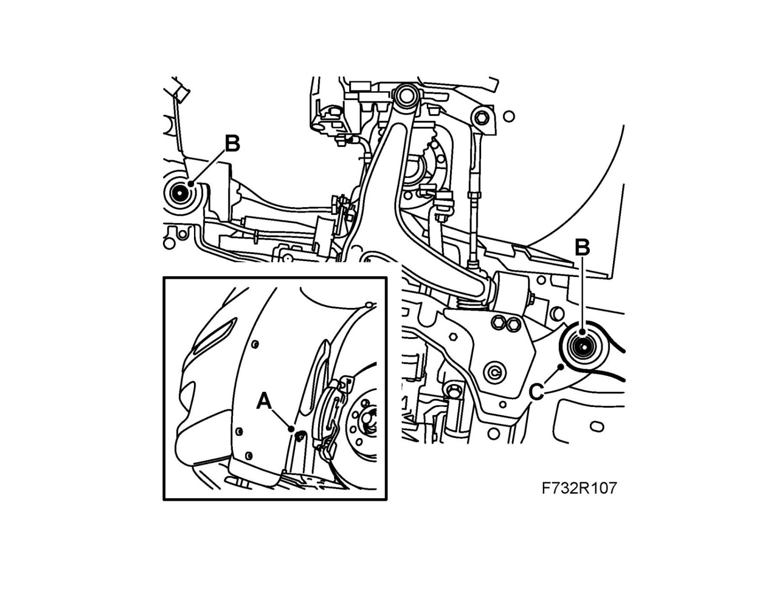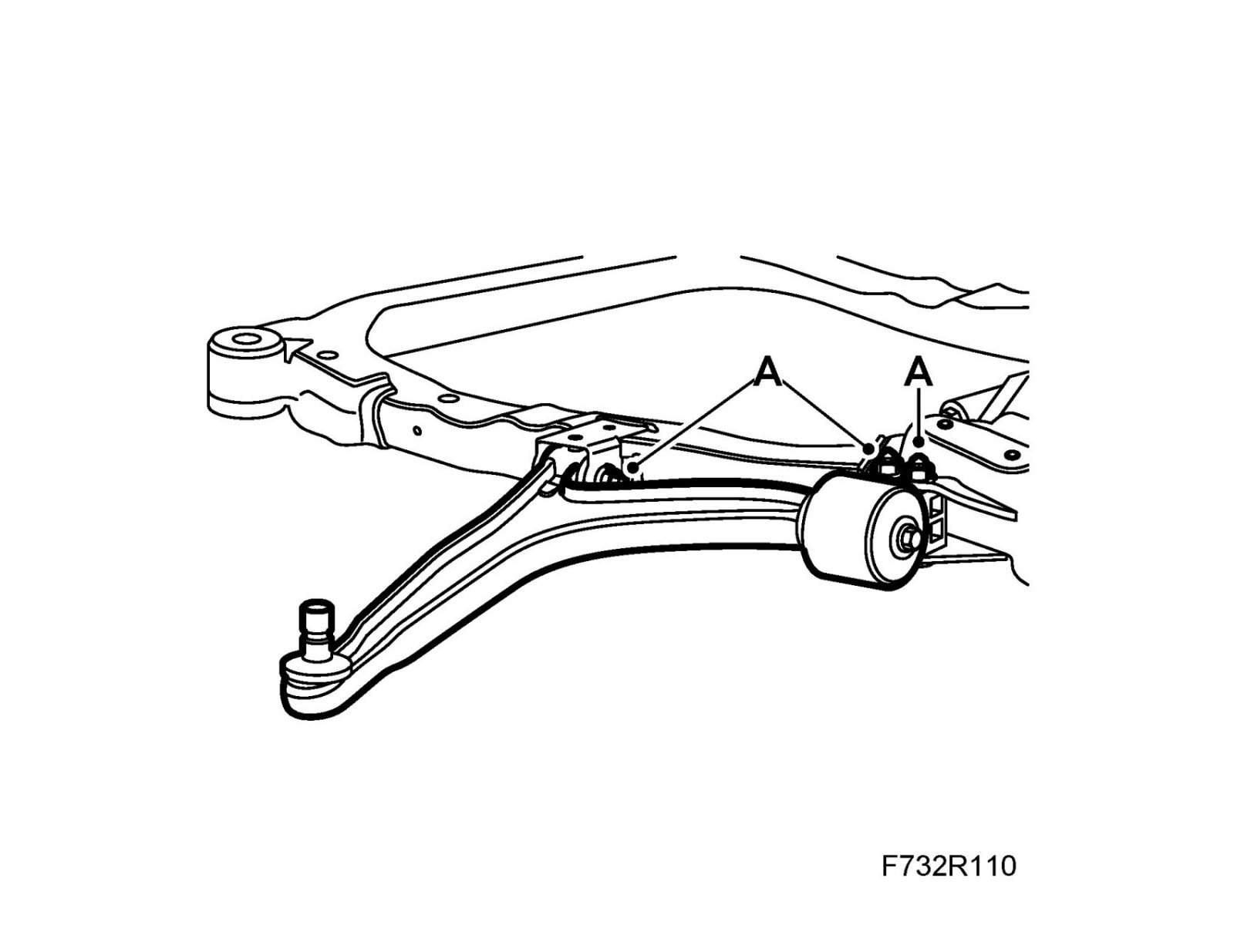 Front bush (A) to subframe 65 Nm +135° (48 lbf ft +135°)