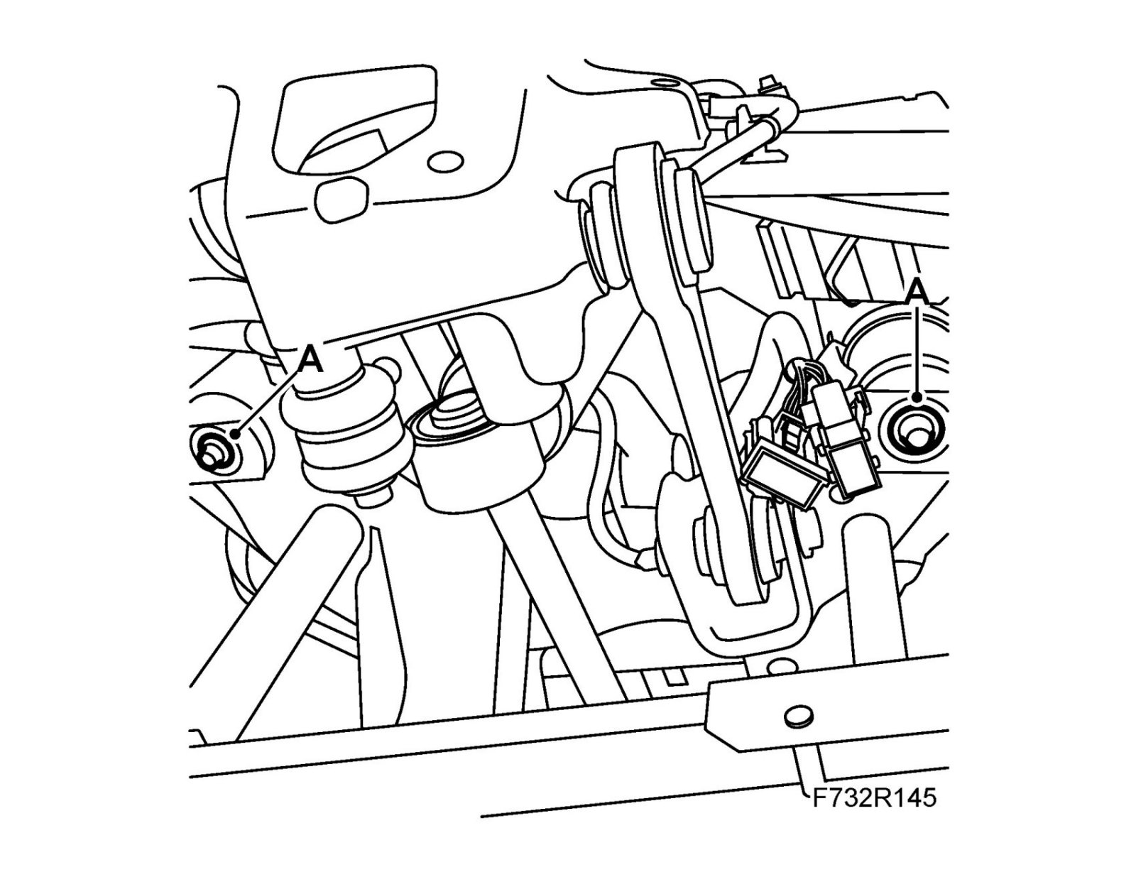 4. Remove the bolts (A) securing the upper suspension arms to the subframe.
