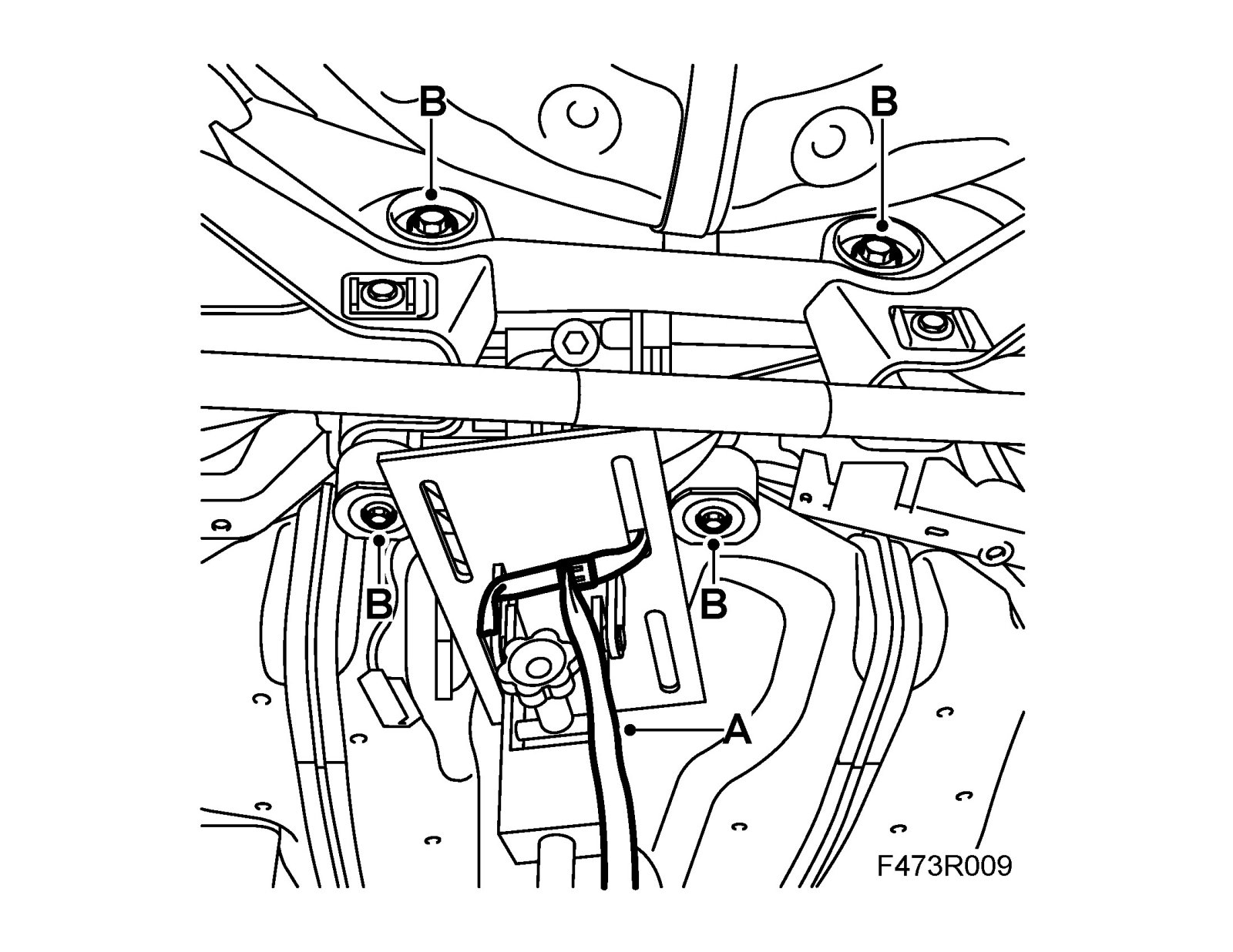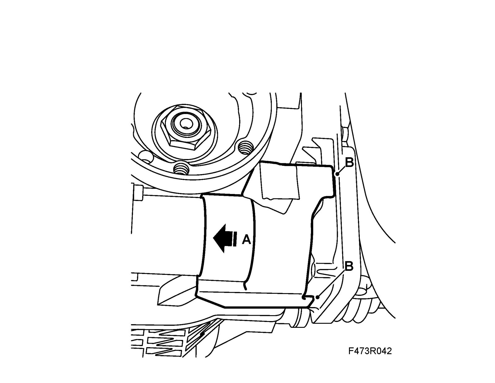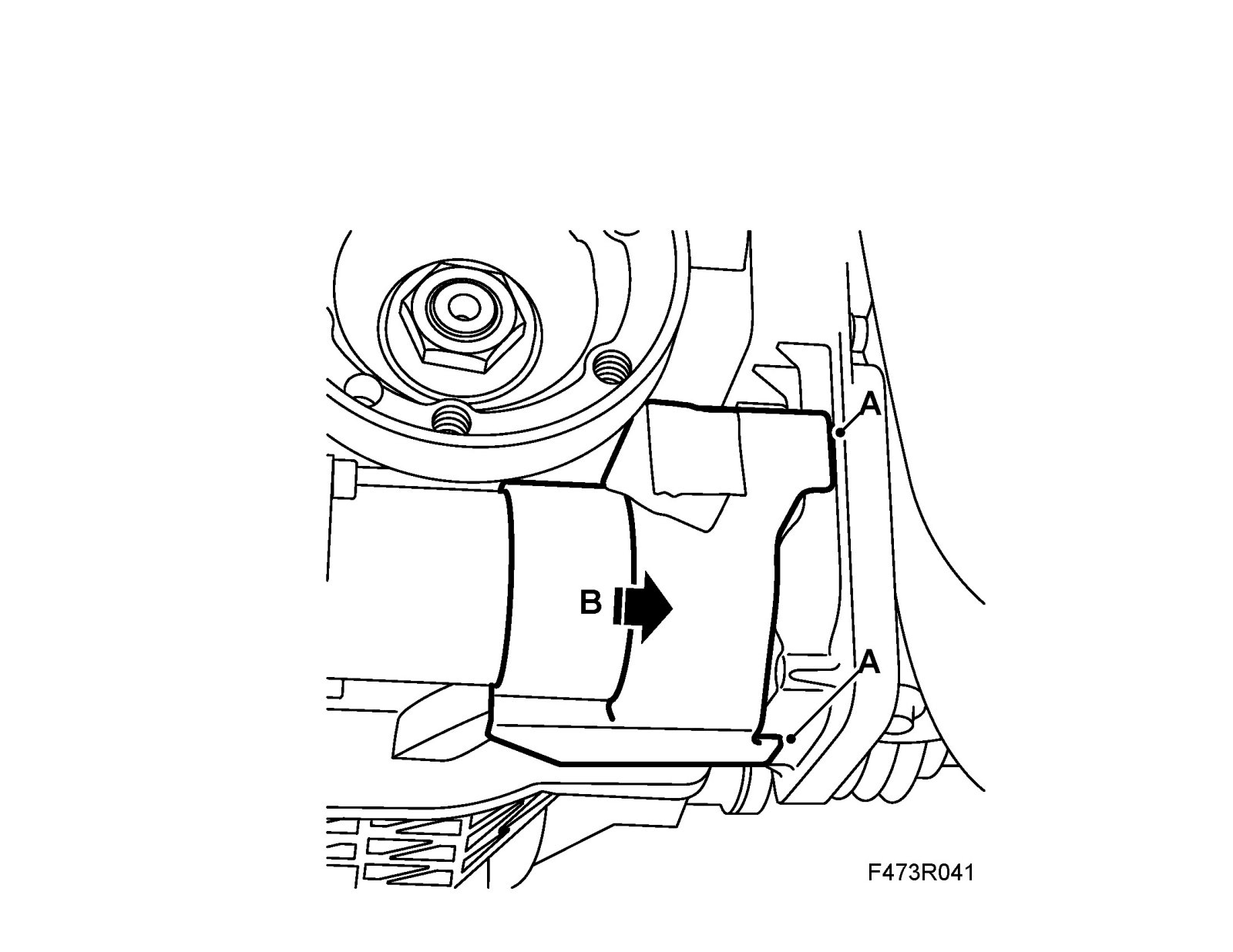 8. Use a column jack as support for the differential clutch, secure with strap (A).
