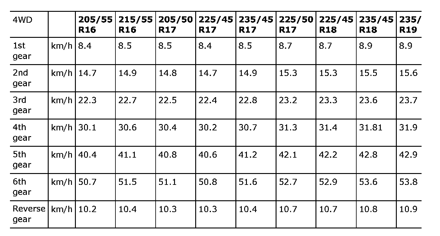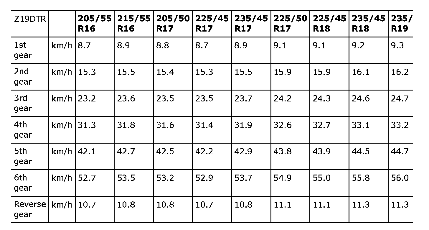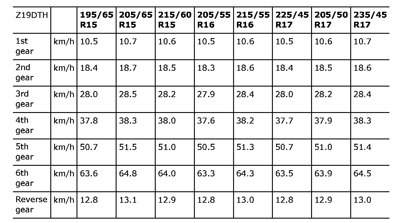 Speed at 1000 rpm. Torque converter gear ratio 1:1