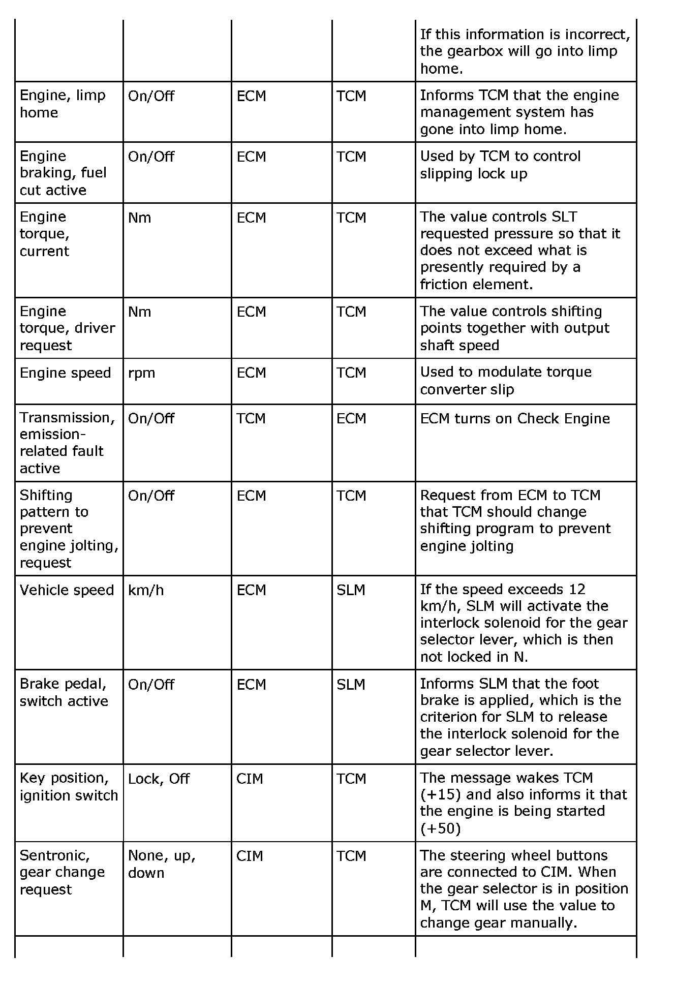 TCM, Bus Information