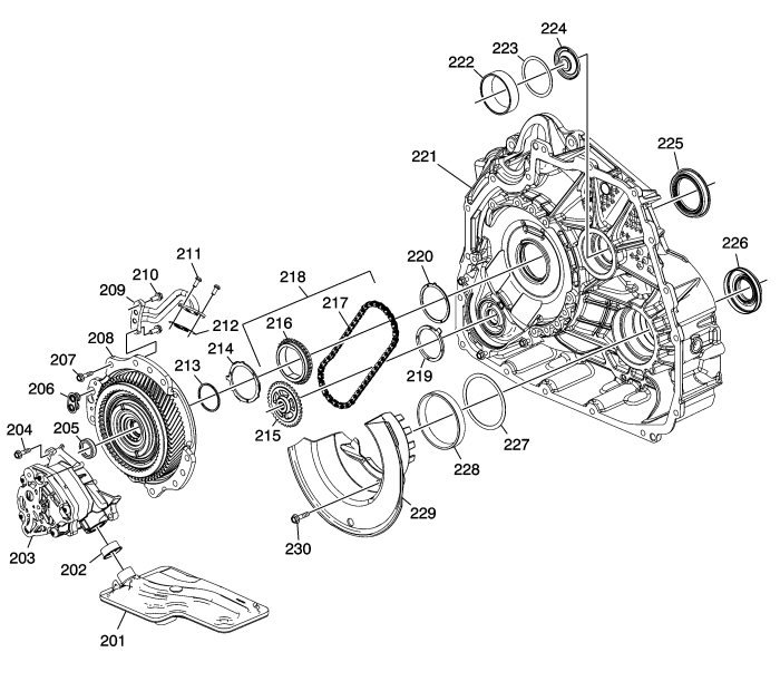 (206) Front Differential Transfer Drive Gear Support Torque Converter Fluid Seal Assembly