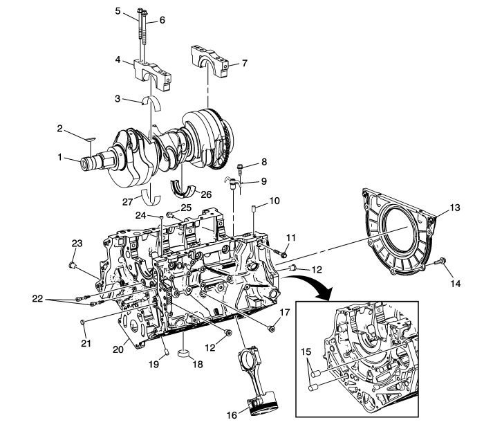 (115) Crankshaft Bearing Cap Outboard Bolt