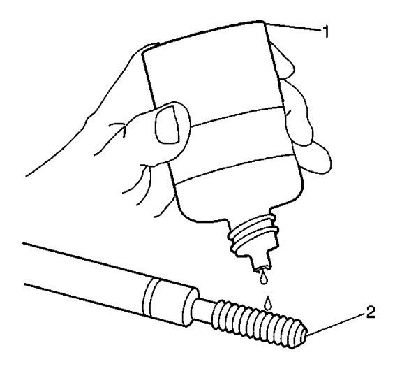 6. Apply threadlock sealant, EN 42385-109, LOCTITE 277(R) or equivalent (1) to the insert OD threads (2). Refer to Adhesives, Fluids, Lubricants, and Sealers for recommended sealant.