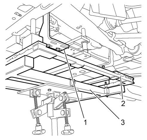 35. Install CH 49289 Support frame fixture (1) to the CH-904 Basic tool (3) and position the tool to the CH-49290 Engine fixture (2) and the zero holes in the body.