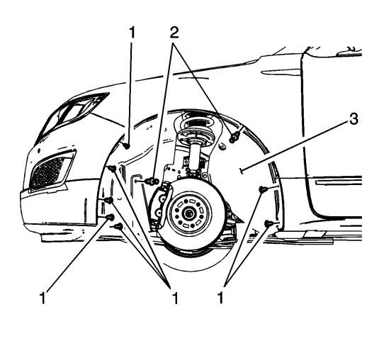 20. Remove right side front wheelhouse liner front fasteners. Refer to Front Wheelhouse Liner Replacement.