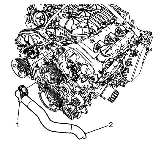12. Disconnect the radiator outlet hose from the engine. Refer to Radiator Outlet Hose Replacement (LAU) Radiator Outlet Hose Replacement (LF1).