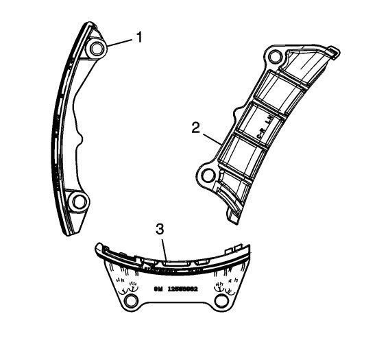 Secondary Timing Chain Guide Installation - Right Side1. Ensure that the right secondary camshaft drive chain guide (1) is being installed.