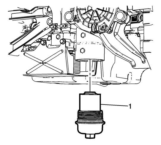 Use a 32 mm (1 1/4 in) socket on the hex on top of the oil filter cap, or an oil filter wrench on the outside diameter of the oil filter cap.