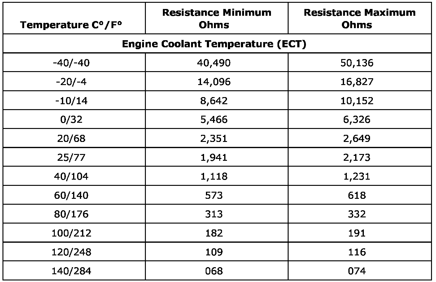 Temperature Versus Resistance - Engine Coolant Temperature Sensor
