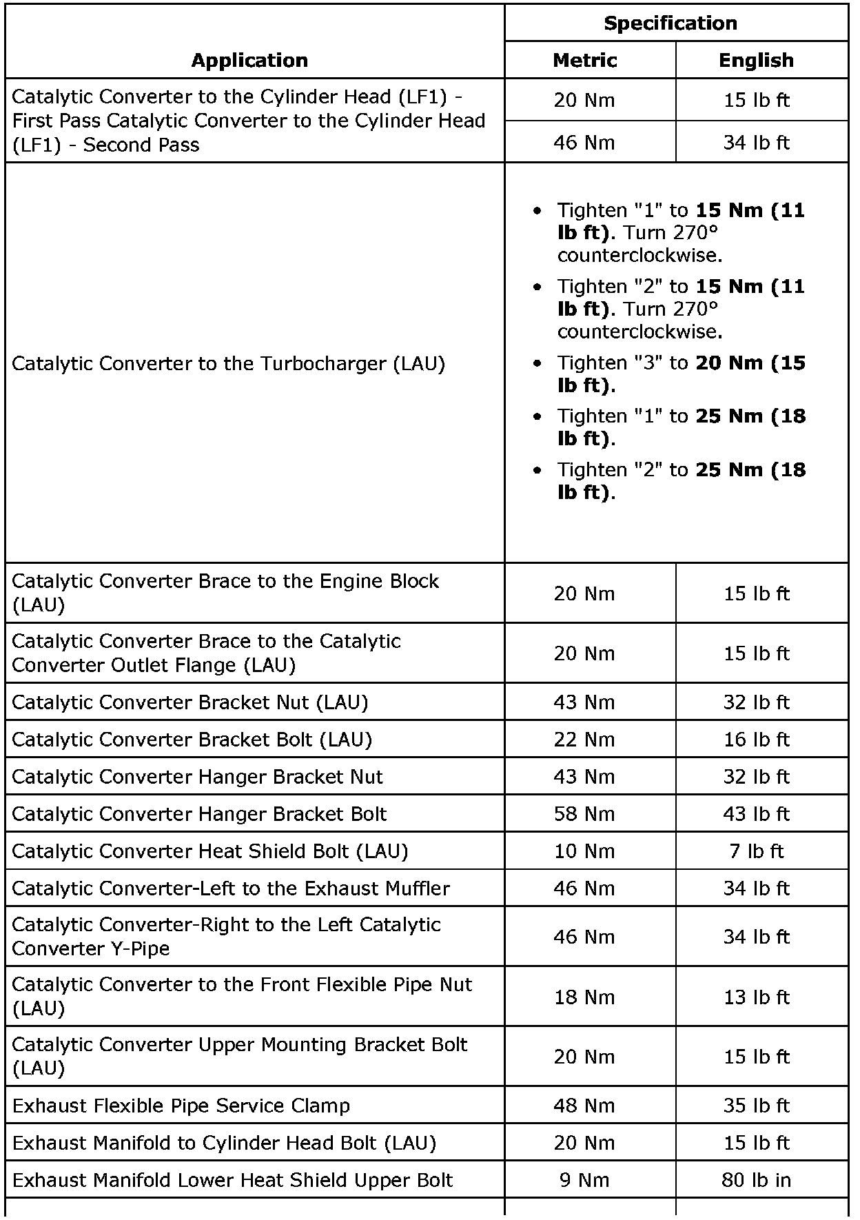 Fastener Tightening Specifications