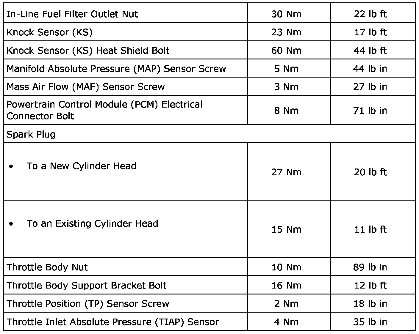 Fastener Tightening Specifications