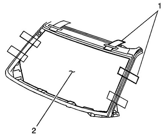 24. Align the masking tape (1) lines on the window (2) and the body.