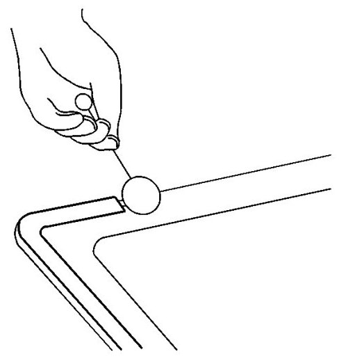 4. Inspect the pinch weld flange of the window opening for causes of a broken window.