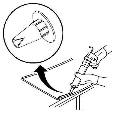 20. Cut the applicator nozzle in order to provide a minimum urethane bead of 14 mm (0.55 in) wide and 14 mm (0.55 in) high.