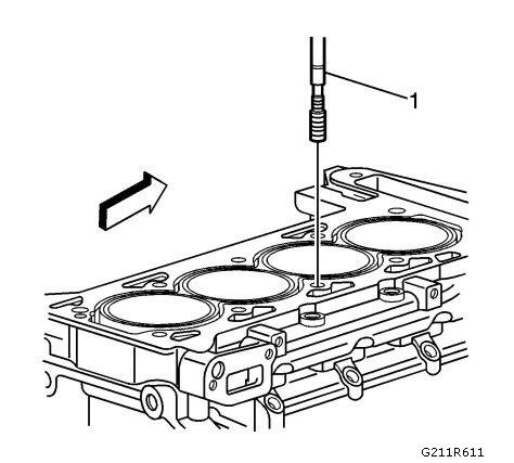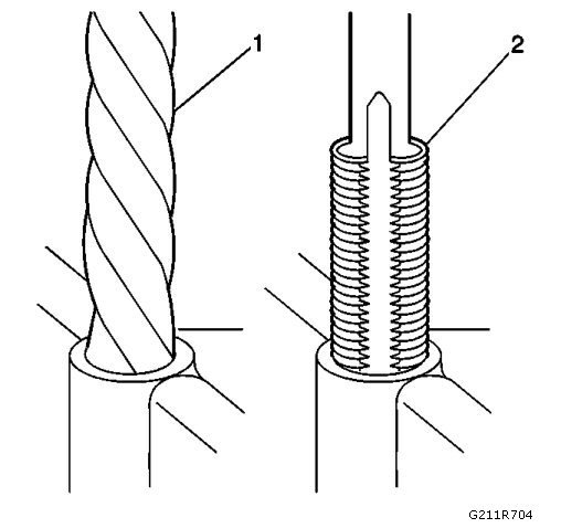 In order to tap the new threads to the proper depth, rotate the tap into the hole until the mark (3) on the tap aligns with the top of the bushing (2).