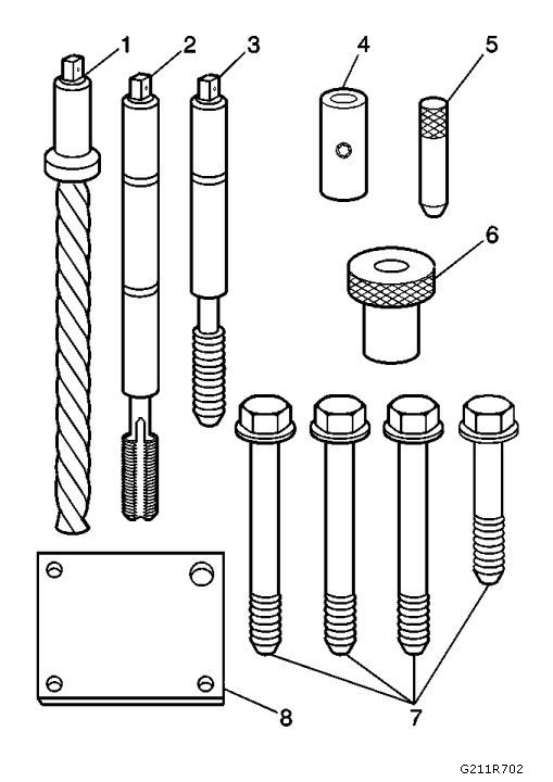 1. The cylinder head bolt hole thread repair kit consists of the following items: