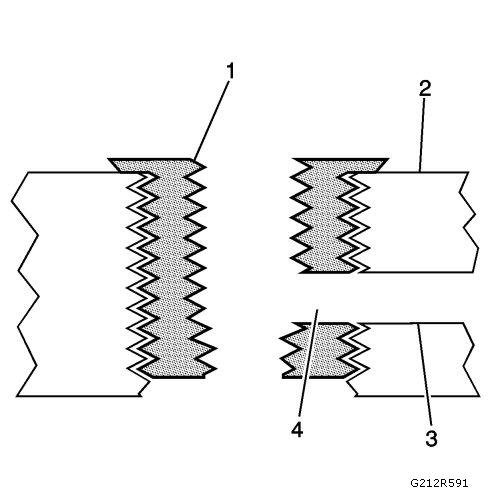 6. Apply threadlock sealant, EN 42385-109, LOCTITE 277(R) or equivalent (1) to the insert OD threads (2).