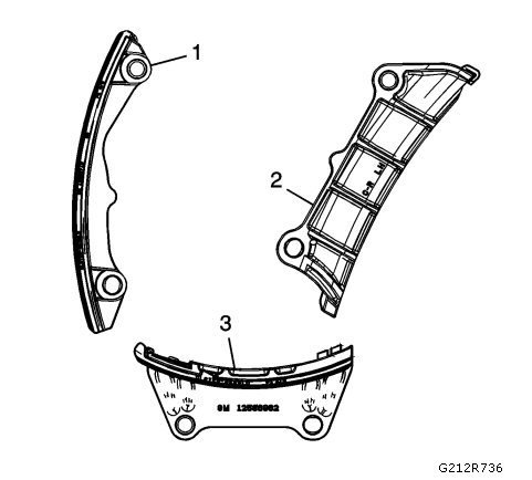 Primary Timing Chain Guide Installation - Upper1. Ensure the upper primary camshaft drive chain guide (3) is being installed.