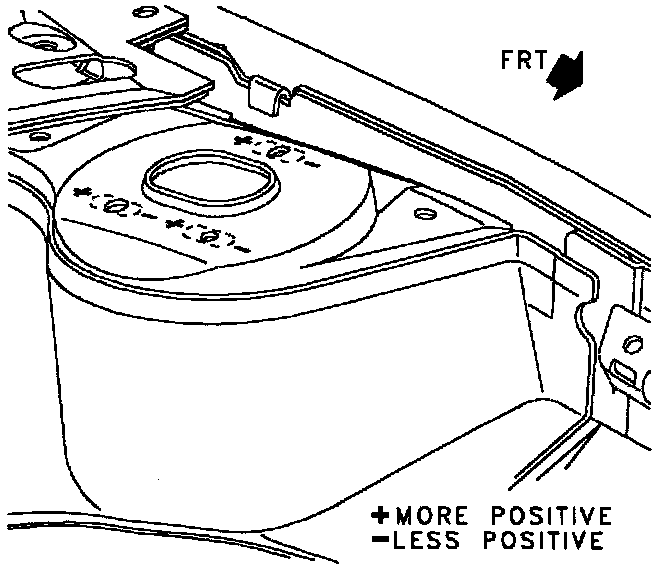 3. Slide strut forward or rearward, to adjust. Body attachment holes may need to be filed or ground into oval slots, to allow enough front to rear strut movement to adjust caster to specifications.