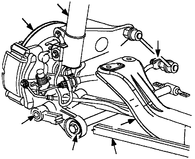 c. Check lower control arms for worn ball studs, worn bushings, or bent arms.