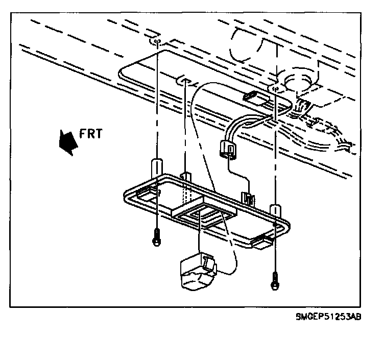 2. Remove map lamp base assembly from roof console assembly and disconnect wire connector to sunroof switch.