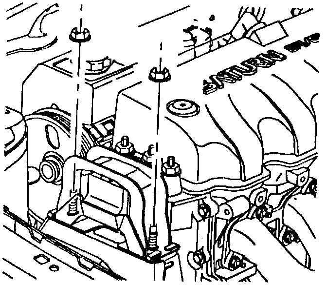 1. Remove the two engine mount-to-midrail bracket nuts and discard.