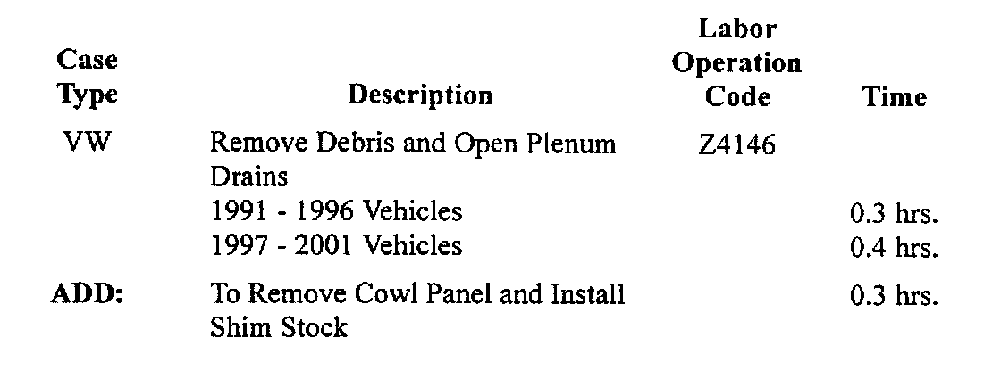 6. On 1997 2001 vehicles, remove both plenum drains. Use a stiff piece of wire and push wire through drain slot to verify that drain is clear.