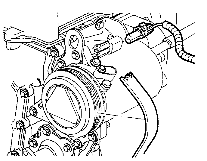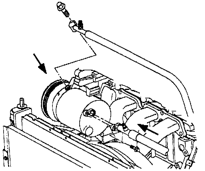 4. Remove accessory drive belt from compressor clutch pulley by rotating belt tensioner clockwise.