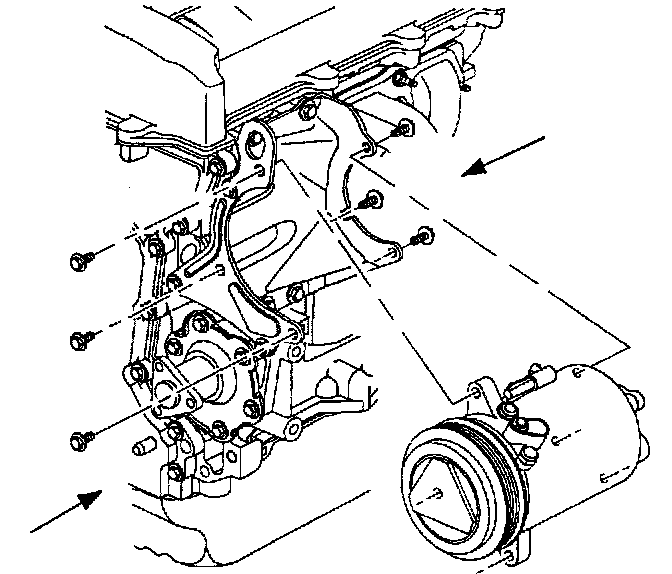 8. Remove the rear compressor to bracket bolts