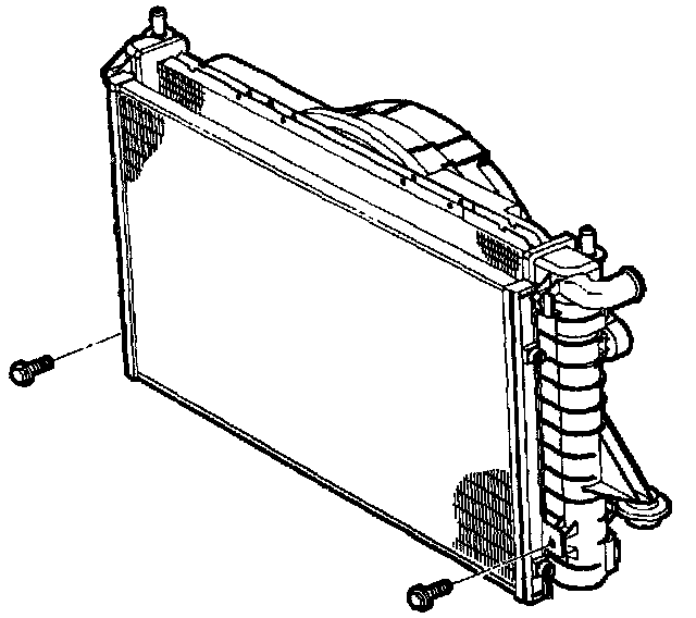 7. Facing the vehicle, pull the condenser back slightly to release it from the mounting pads. Carefully slide condenser straight down.