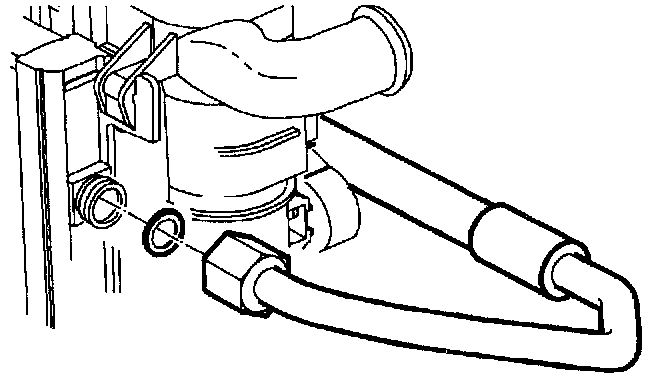 IMPORTANT: Make sure receiver-dehydrator hose is parallel with the condenser after tightening the fitting. This will provide hose clearance to the body and frame, avoiding potential damage to the hose.
