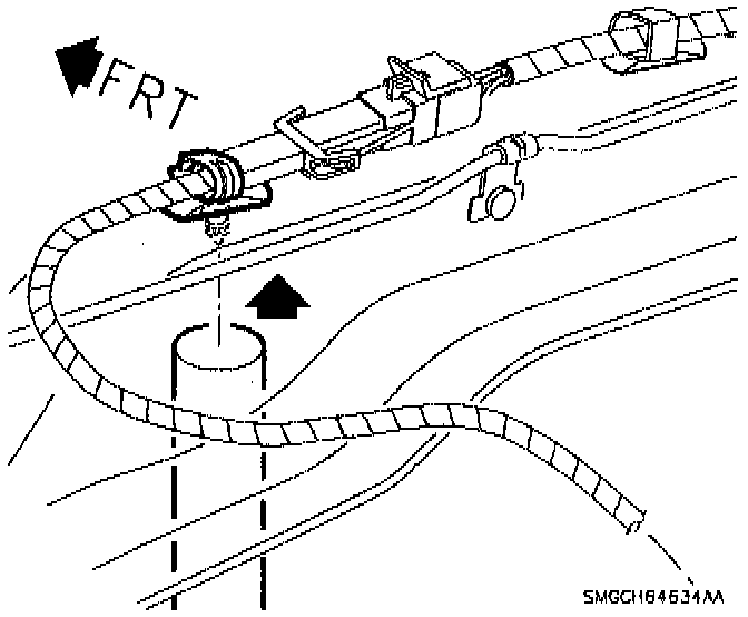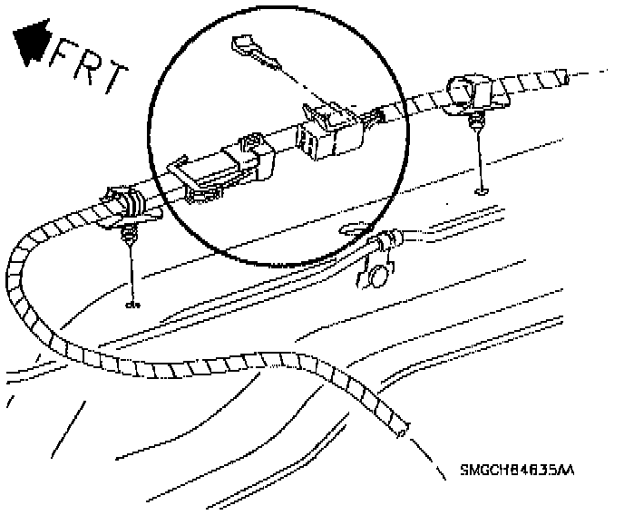 Make sure to center the white marker tape on the rear heated oxygen sensor pigtail with the edge of the trough. The white marker tape must be centered with the edge of the trough to ensure there will be no stress on the sensor connection.