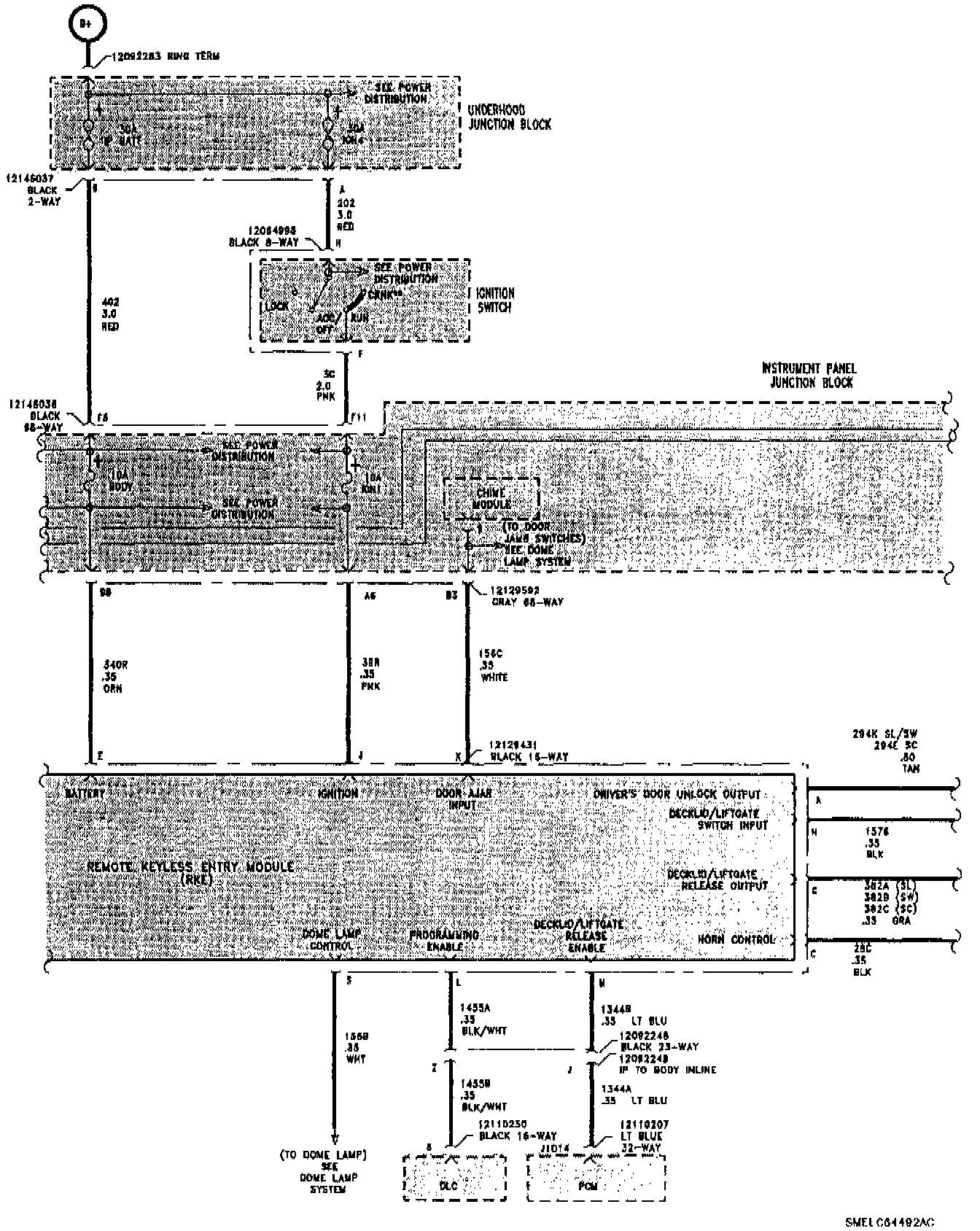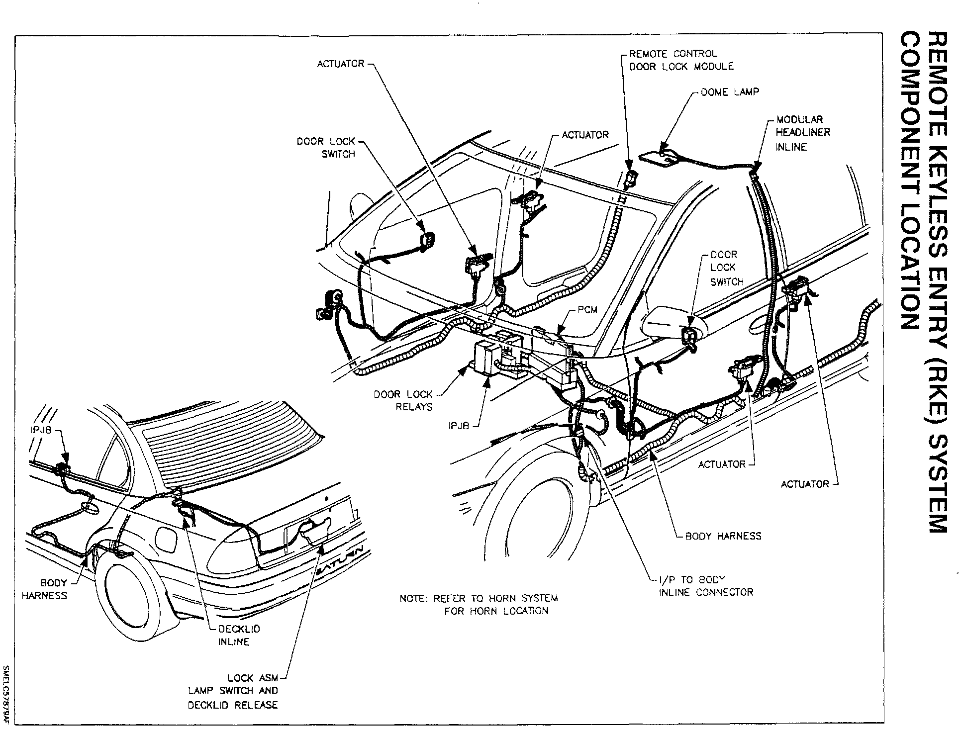 The first editions of the "1996 Electrical Service Manual" and "1996 Powertrain Controls Service Manual" were published with some omissions or errors in the remote keyless entry electrical schematics, diagnostic trouble trees and function checks. For your convenience, this bulletin provides complete diagnostic information, and removal and installation procedures for the 1996 remote keyless entry (RKE) system.