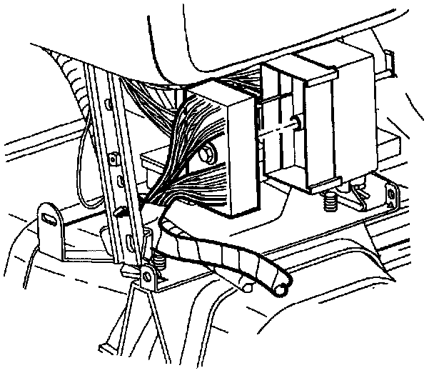 20. Install passenger side air bag harness to energy absorber and cross-car beam.
