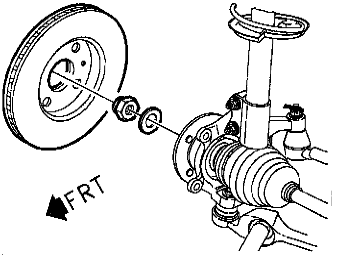 1. With vehicle on ground, depress brake pedal and loosen axle to hub nut.