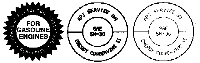 The American Petroleum Institute (API) logo is a circle divided into three sections. The top half of the circle is the "API Service" section, which is used to indicate the quality of the oil. The lower half of the circle is the "Energy Conservation" section, which indicates the oil's degree of fuel efficiency. The center of the circle is the "Viscosity" section, which is used to indicate the viscosity of the oil. The oil container should have a "Starburst" label instead of the doughnut shaped symbol.Multi-grade Oils