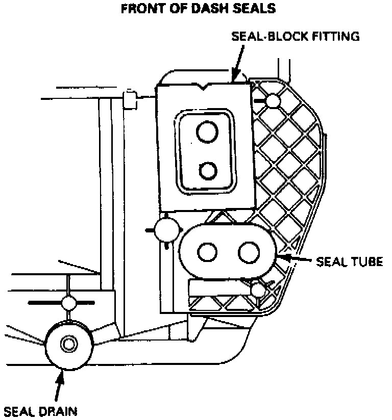 1. Install new cowl panel seals on heater core pipes, case drain, and evaporator block.
